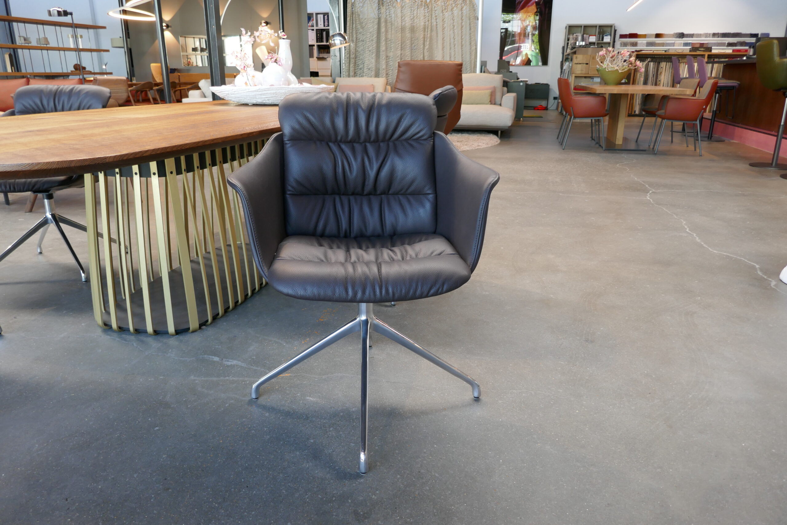 Luxe draaistoel met bijzonder hoogwaardige lederen bekleding.