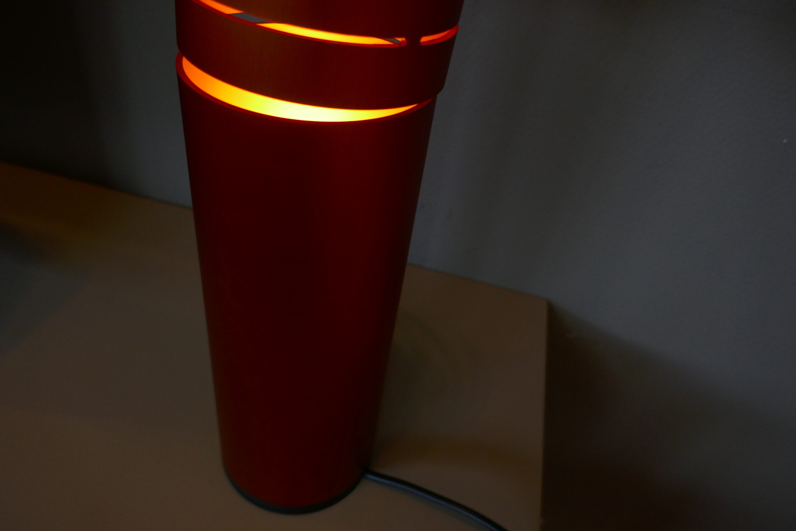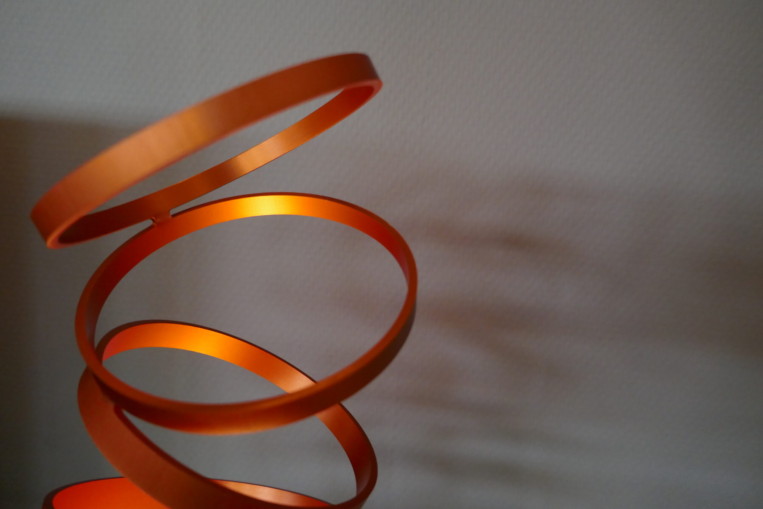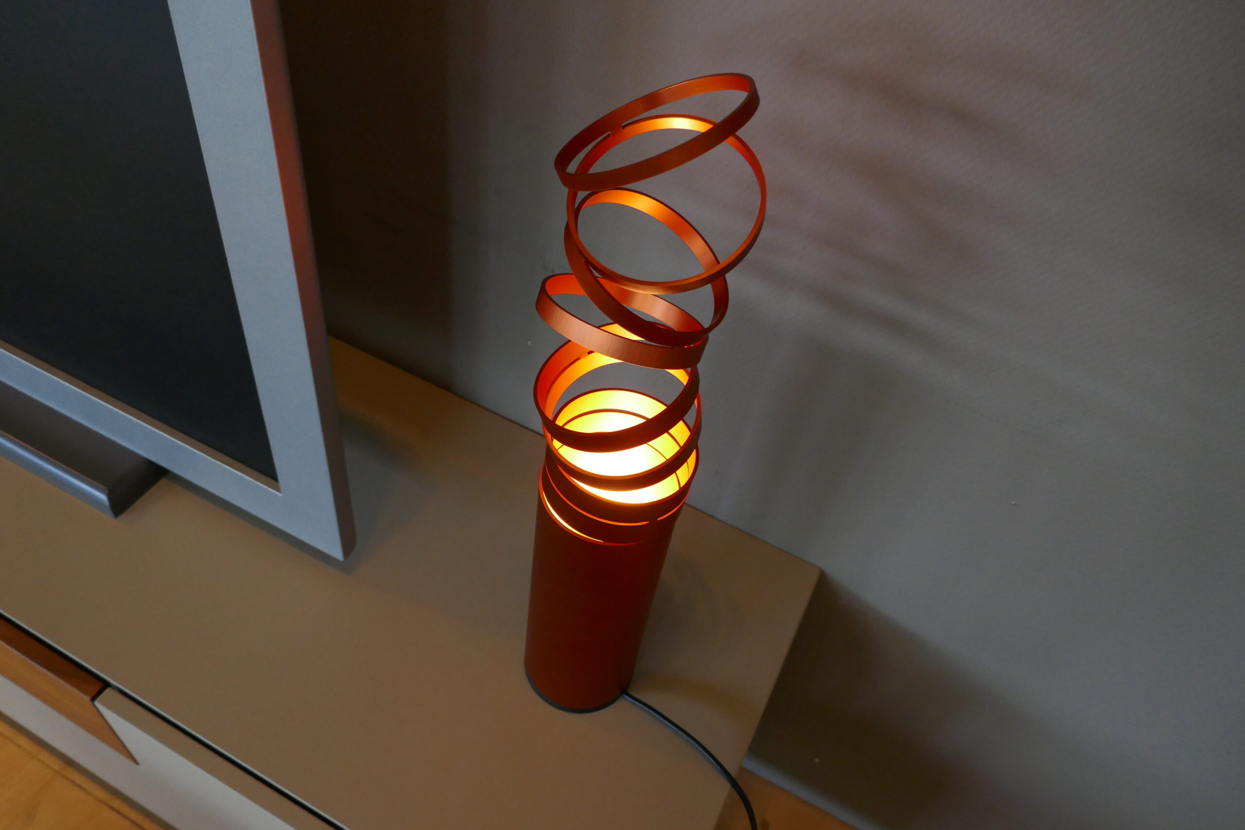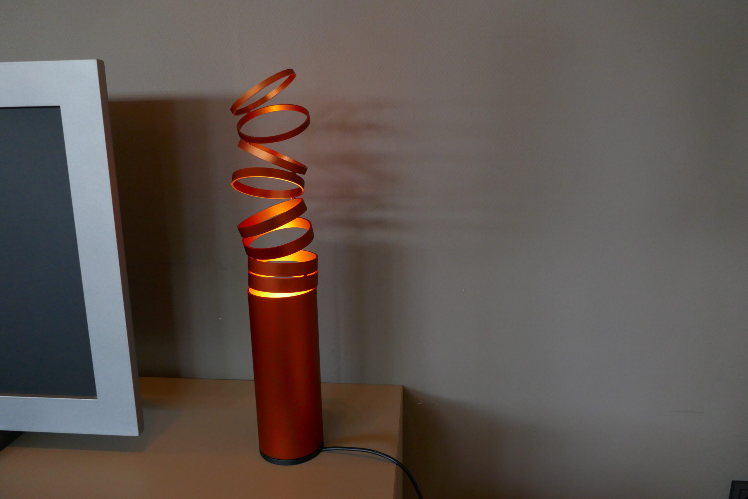 Tafellamp met kunstzinnige vormgeving in het oranje.
